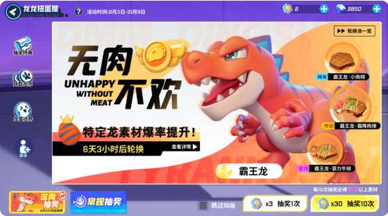 活动期间可使用龙币抽取扭蛋,扭蛋机中可能出现龙蛋或食材,龙蛋和食材可用于龙龙的养成,提升龙龙的萌力值!