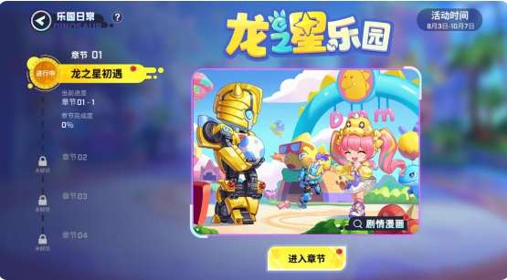 08月03日至10月07日,少年们可以在乐园日常版块里完成任务来获得龙币,还能解锁章节漫画来了解更多机械之心和龙龙们的故事哦~