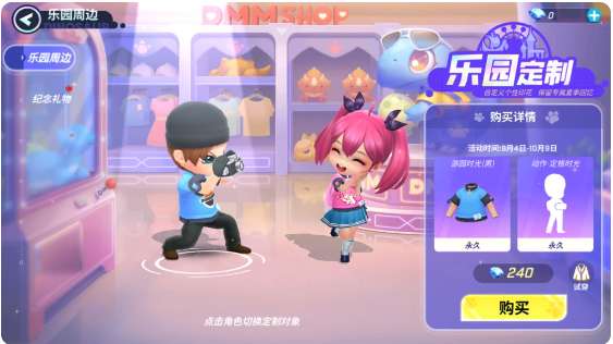 08月04日至10月09日,乐园周边上新啦!少年们可以在这里购买乐园定制周边【游园时光】上衣(失忆者款和小学妹款),以及限定动作【失忆者·定格时光】和【小学妹·定格美好】!