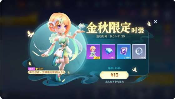购买礼包即可获得限定时装【影之忍者·玉蝶鎏金套装】以及点券、钻石等丰富奖励!