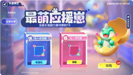 08月04日至08月14日,可以享受超低折扣购买礼物【礼物·应援龙龙】,折扣期间送出该礼物可获得限定头像框【头像框·打Call龙之星】,收到该礼物可获得限定头像框【头像框·闪闪龙之星】哦!