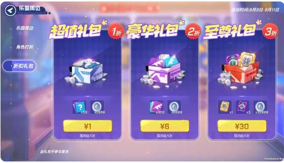 08月12日至09月11日,可以享受超低折扣购买角色或“角色+时装套装”礼包!