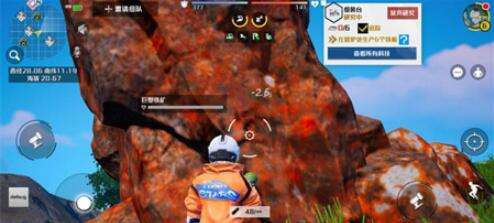 如图所示这种看上去锈迹斑斑的大石块就是铁矿,看上去是深红色的,靠近就能进行采集,这种铁矿能够用来制作生产工具、工作台等重要物品