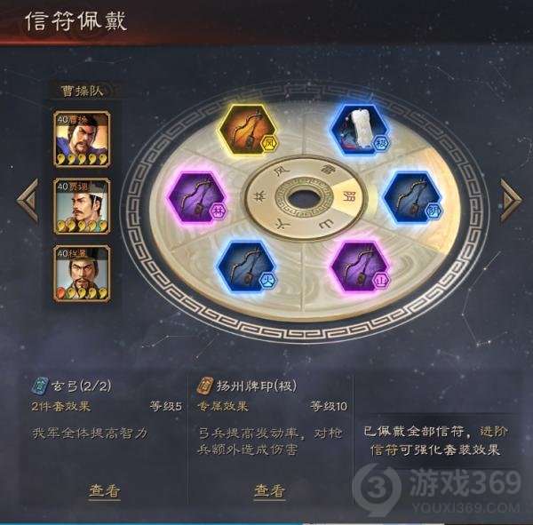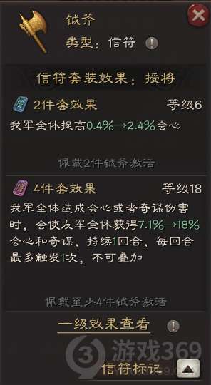 【先锋印】分析:防御型的信符,应该可以针对蜀枪和五谋臣这种主动战法很多的队伍,效果有点类似诸葛亮的技能,不过需要主将是高智力