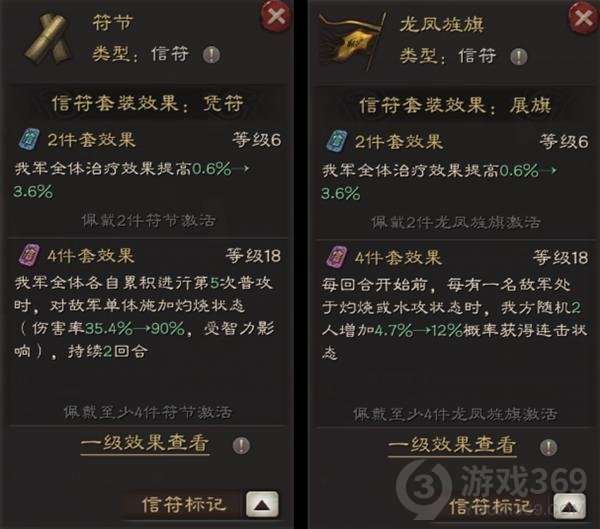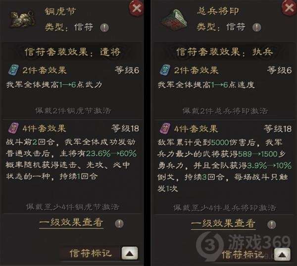 【铜虎节】:对需要快速叠状态的队伍,会有比较好的增益。例如:孙权阵容比较推荐是叠出破阵+洞察,但是自带增益众多,一个一个叠着又太慢,配上这个铜虎节队友两个人一起帮孙权叠增益,先把必中、先攻、连击刷出来,这样孙权出洞察破阵就会更快。张辽爆头骑的队伍也有队友帮他加上连击、先攻、必中,每个增益对张辽都是质的提升。