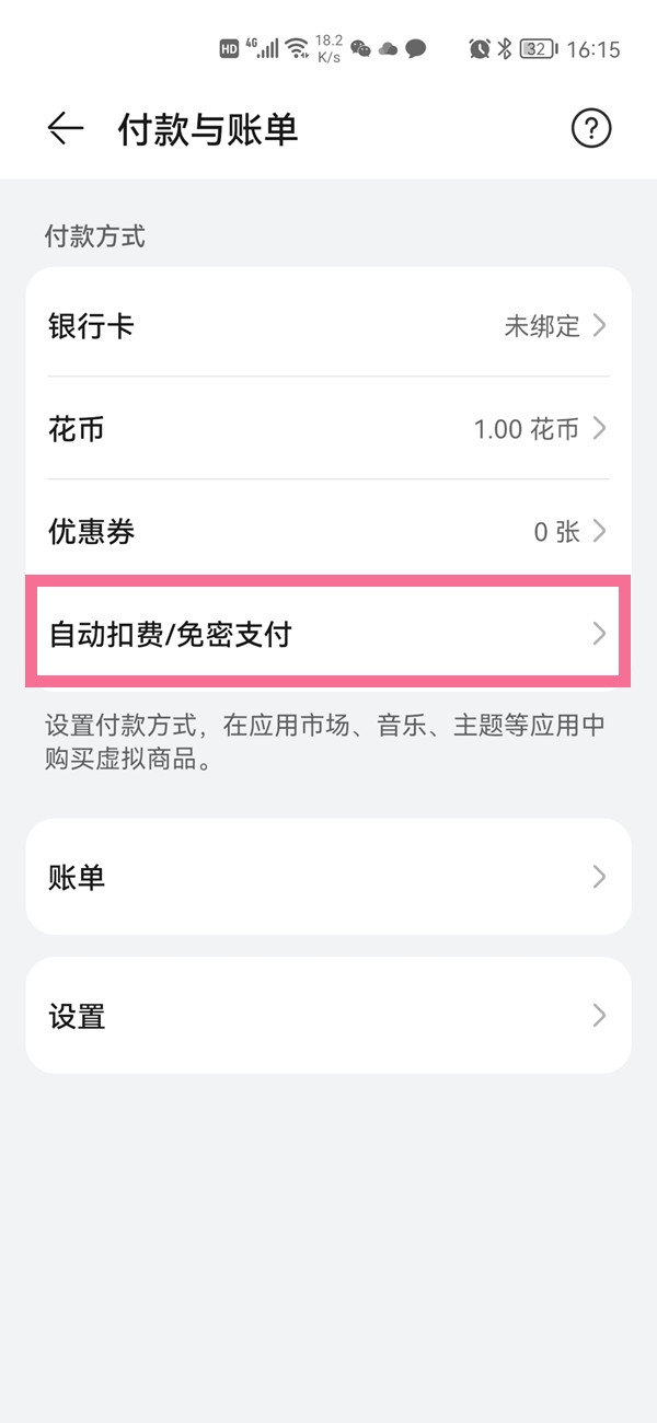 3、点击【自动扣费/免密支付】,选择音乐进行解约即可。