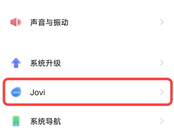 1、在手机设置菜单中点击【Jovi】。