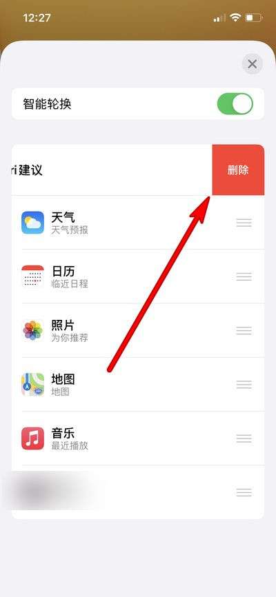 如果其他的小组件不需要关闭智能轮换,可以左滑小组件,点击删除即可。