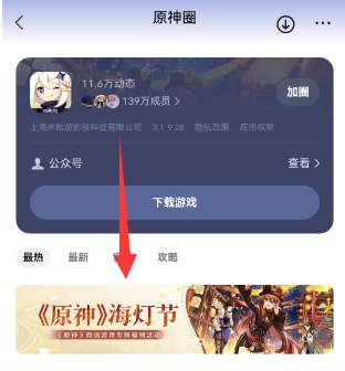 3、我们在原神圈中,找到下图的海灯节的活动幻灯片,然后点击进入。