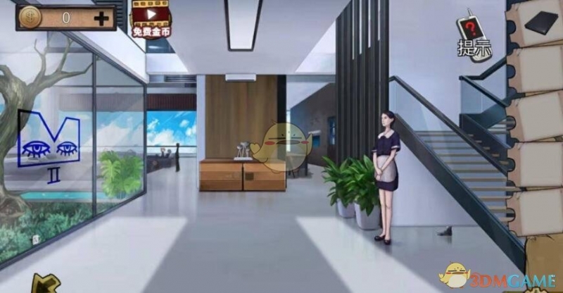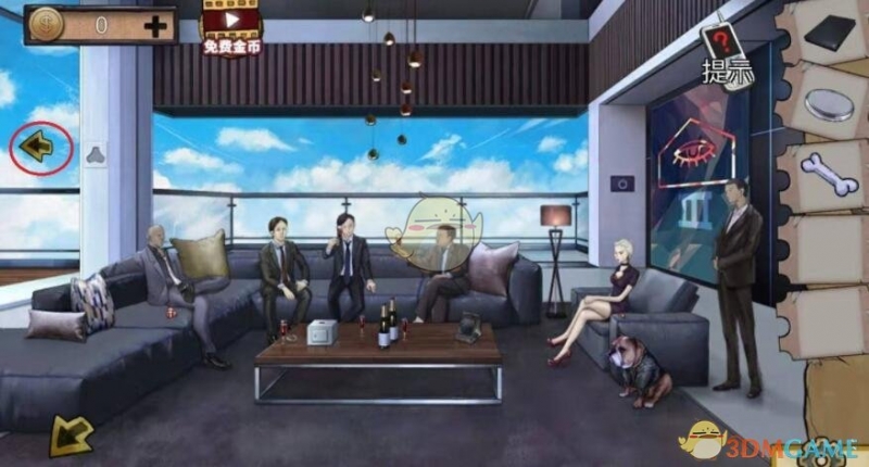 2、进入别墅,佣人脚下的皮鞋有个纽扣电池,并拉开皮鞋拉链,得到骨头,拿去给保镖前面的狗吃,换到半根发条,再点击左边的绿色按钮,进入游泳池。