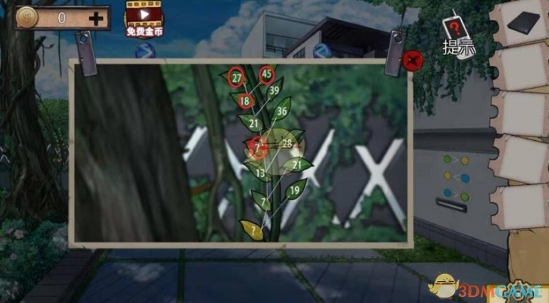 1、梁博文来到别墅门口,左右两边的草丛找到两块断玉,在树下的叶子上有不断增加的一系列数字,得出问号的答案1217,右边墙上和大门两侧的石墩上显示颜色的大小,得到:蓝色>绿色>粉红>黄色>红色,解锁电源,用1217打开大门,进入别墅。