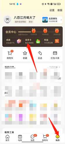 1、选择我的,然后点击会员卡中的免费领菜。