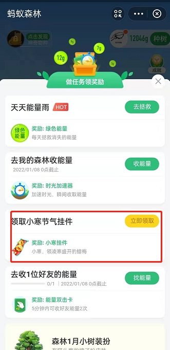 那么,以上就是支付宝蚂蚁森林领取小寒挂件方法一览,非常感谢大家的阅读!希望这篇教程解答能对各位小伙伴玩家们有所帮助。更多相关软件教程请关注十大评测网。