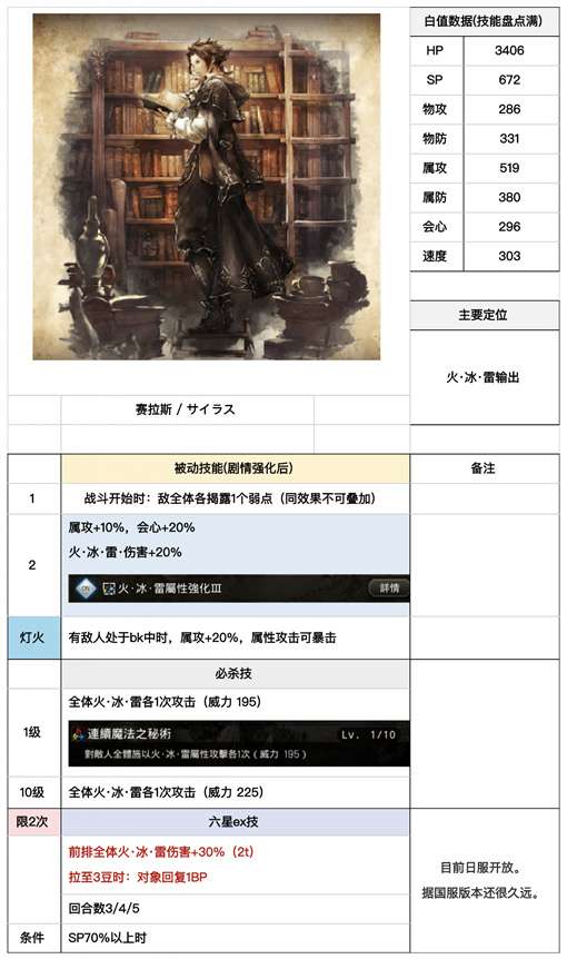 目前在台服,塞拉斯依旧有很高的人气与出场率。日服已开放塞拉斯6星