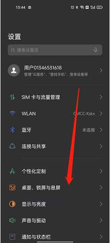1、进入设置,选择【桌面、锁屏与息屏】。