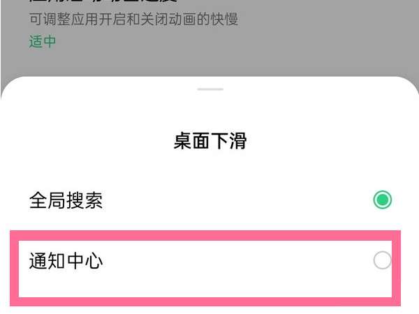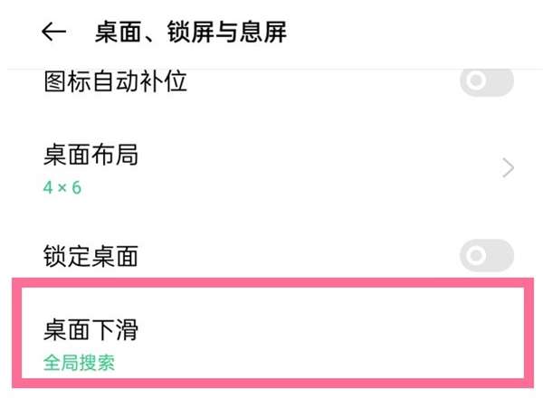 2、找到【桌面下滑】选项。