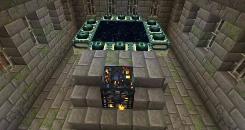 末地传送门是我的世界里一种自然生成的结构,在非创造模式里是无法建造的,一般可在要塞的传送门房间里找到。其建筑会水平悬挂在岩浆池之上,旁边会有一排楼梯,楼梯上则会有一个刷怪笼。玩家往末地传送门里插上九个末影之眼,就会打开通过末地的大门。