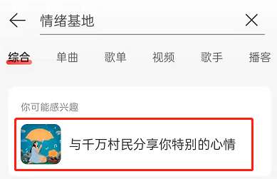 1、打开网易云音乐,输入情绪基地,点击进入与千万村民分享你特别的心情。