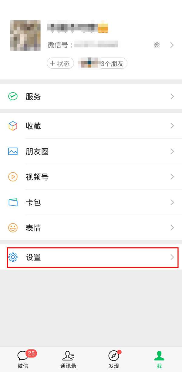 1、在微信“我”界面,点击设置。