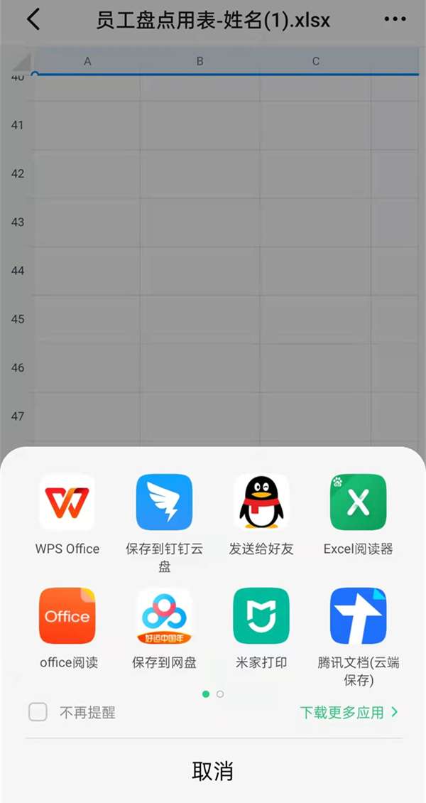 1、首先,在钉钉中打开文件后,点击其他应用打开。