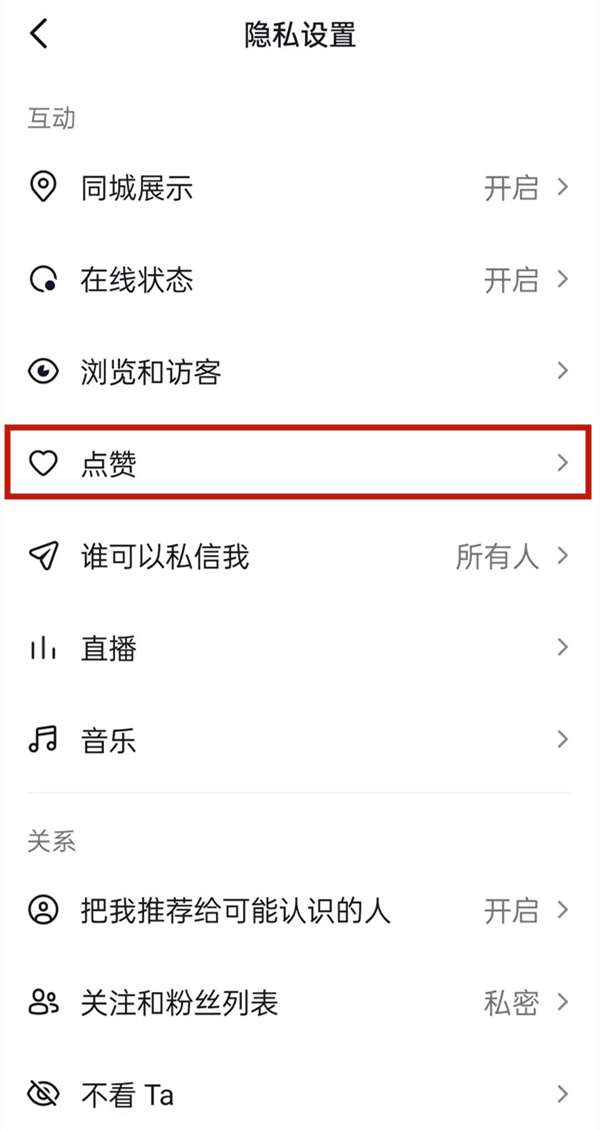 4、点击作品点赞信息,选择任何人不可见。