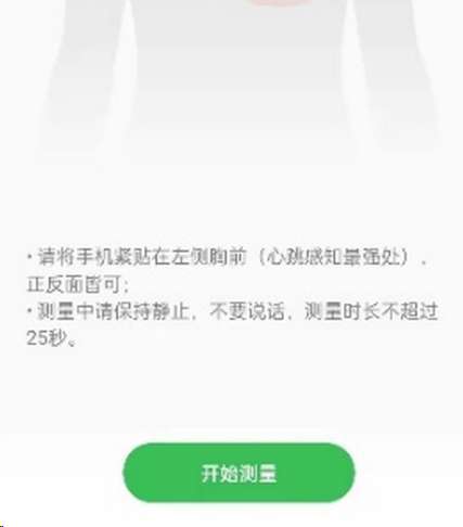 4、将手机紧贴在左侧胸前,就可以自动进行心率测量了。