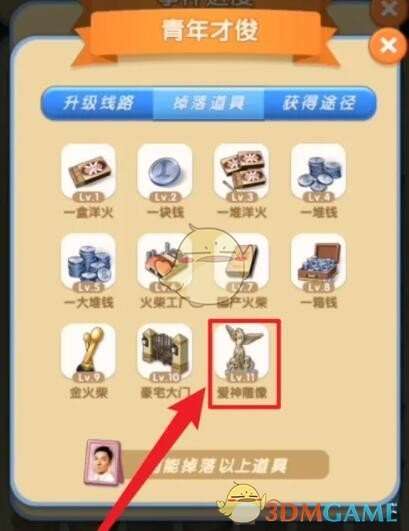 3、在掉落道具中拾取获得【爱神雕像】