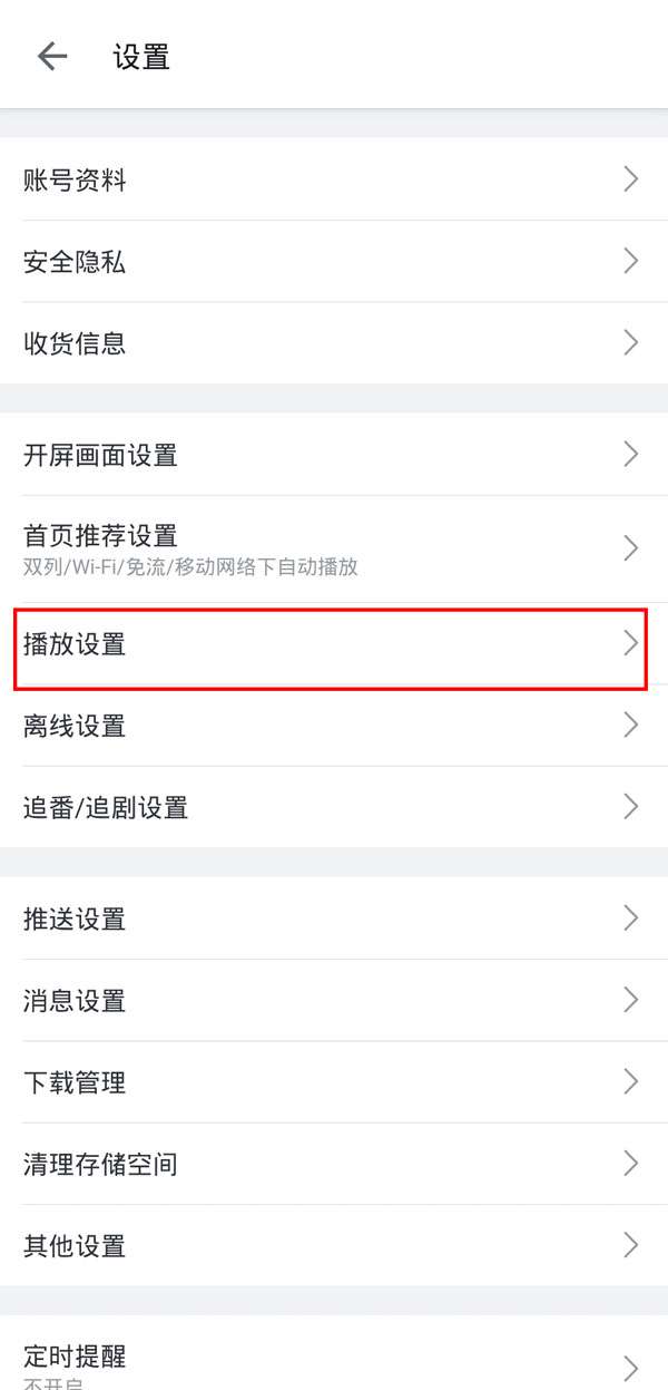 2、找到播放设置。