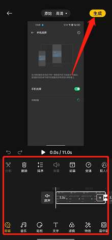 3、在下方切换时间即可自由剪辑,然后点击生成即可。