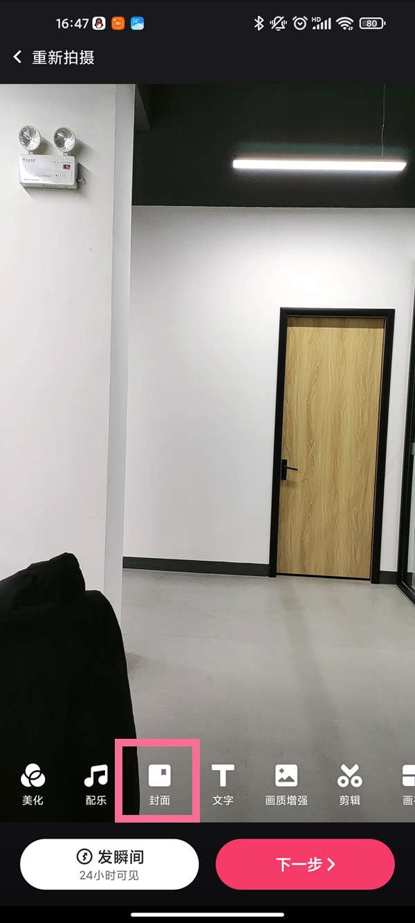 2、拍摄完成后,选择下面封面选项。