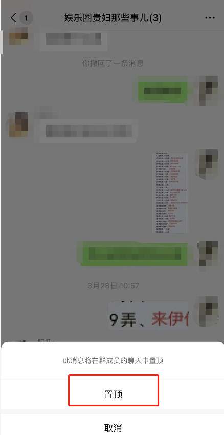 2、在下方出现的选项中点击确认置顶。