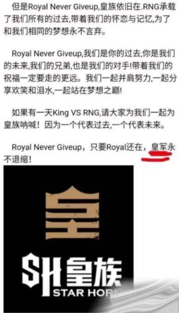 而在RNG的官方微博中,在其中一篇博文内却写了“只要Royal还在,皇军永不退缩”。皇军这个称呼很容易联想到二战时的日本军队自称,因此RNG被戏称为日本队。