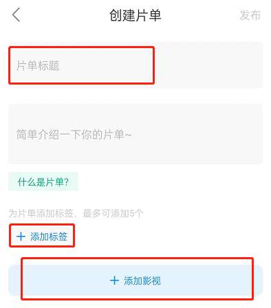 2、填入片单标题、简介、标签、影视作品。