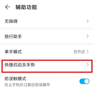 2、点击快捷启动及手势。