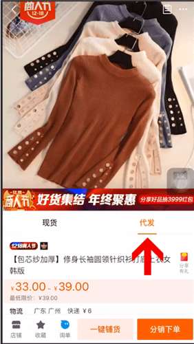 1、首先我们需要查看当前店铺是否支持一件代发,只有支持一件代发的供应商,才提供了一键铺货的功能。点击一个商品,进入后点击代发;