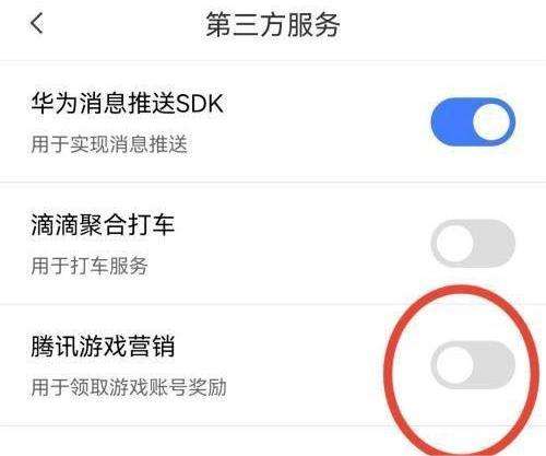 4、随后,选择下方的【腾讯游戏营销】功能,关闭即可。
