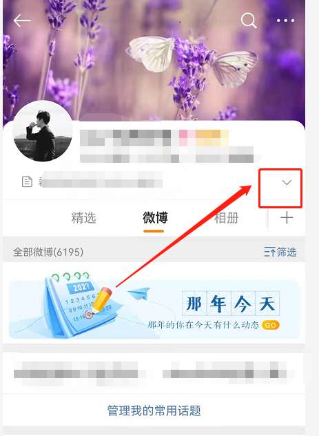 2、进入个人资料页,在介绍旁点击下行箭头。