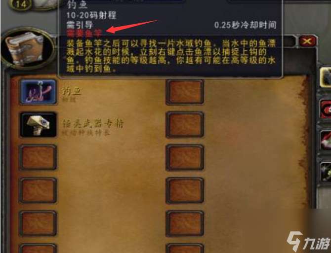 5、点击学习技能后,会发现多了一个钓鱼技能,但是缺少鱼竿。