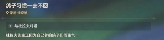 1、接取到每日委托任务【鸽子习惯一去不回】后,与杜拉夫对话;
