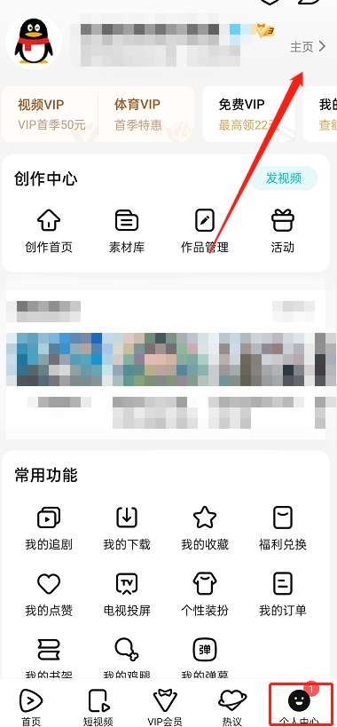 1、打开腾讯视频,点击右下角个人中心,点击进入主页(如图所示)。