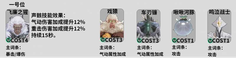 飞廉之猩+戏猿+车刃镰+啾啾河豚+鸣泣战士(43311)