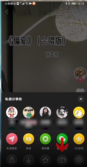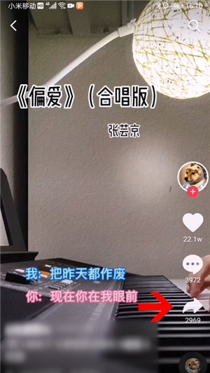 1、打开抖音短视频app,然后打开需要进行对唱的视频,这时点击右侧分享图标,