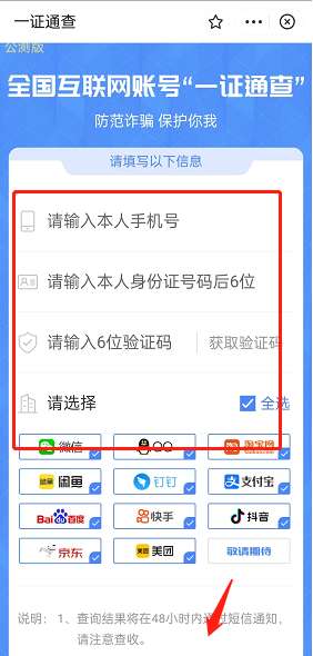 3、在此输入个人账号信息点击查询就可以了,具体信息和查询结果会在48小时内通过短信告知你的。