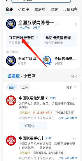1、点击支付宝,在搜索框中输入【一证通查】。