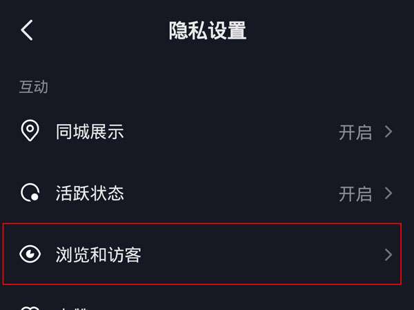 3、点击浏览和访客。