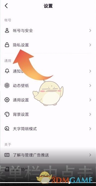 3、点击设置,随后在菜单栏中点击隐私设置;