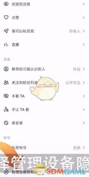 4、选择管理设备隐私授权,再点击管理设备通讯录授权;