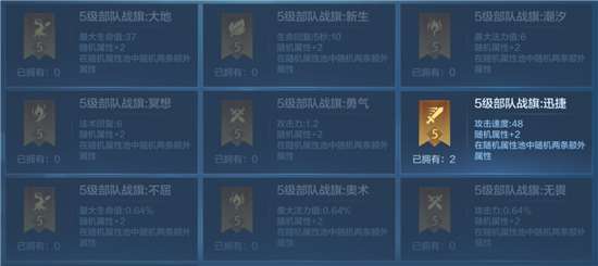 这里提一下,部队战旗里大地战旗其实是属于可以用的一个,大家可以自己选择,不过我觉得一切的恐惧都是因为攻击不够,所以我选择迅捷战旗。