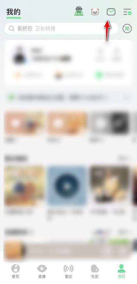 1,在我的界面右上角找到信封图标,点击进入(如图所示)。