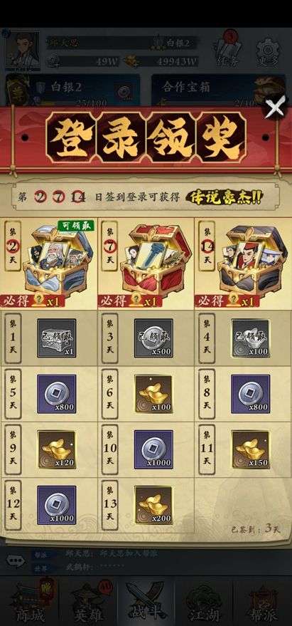 各位少侠可以每日登录的时候领取登录奖励,及完成每日任务就可以获取银币及一些奖励,在每日登录后完成每日的任务,少侠也是可以去做一下新手任务,任务的形式也都是非常简单且容易完成的。